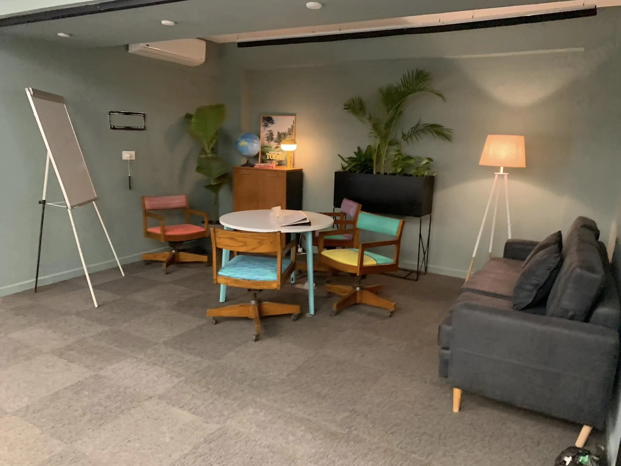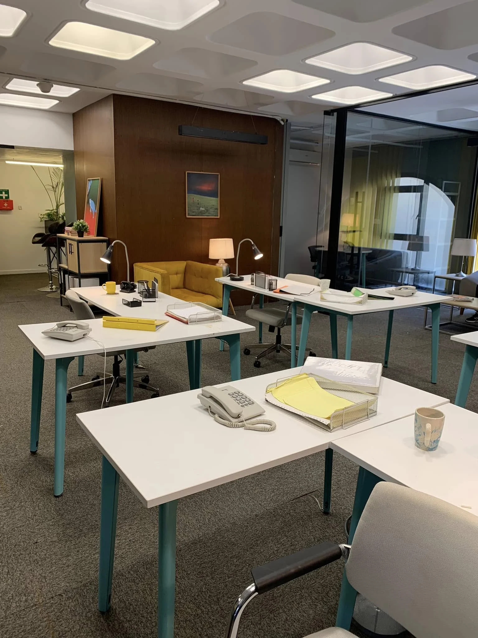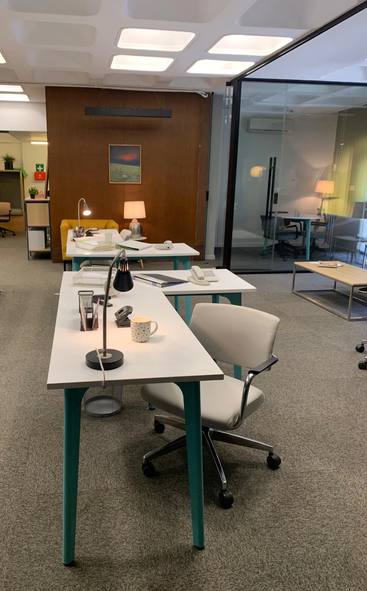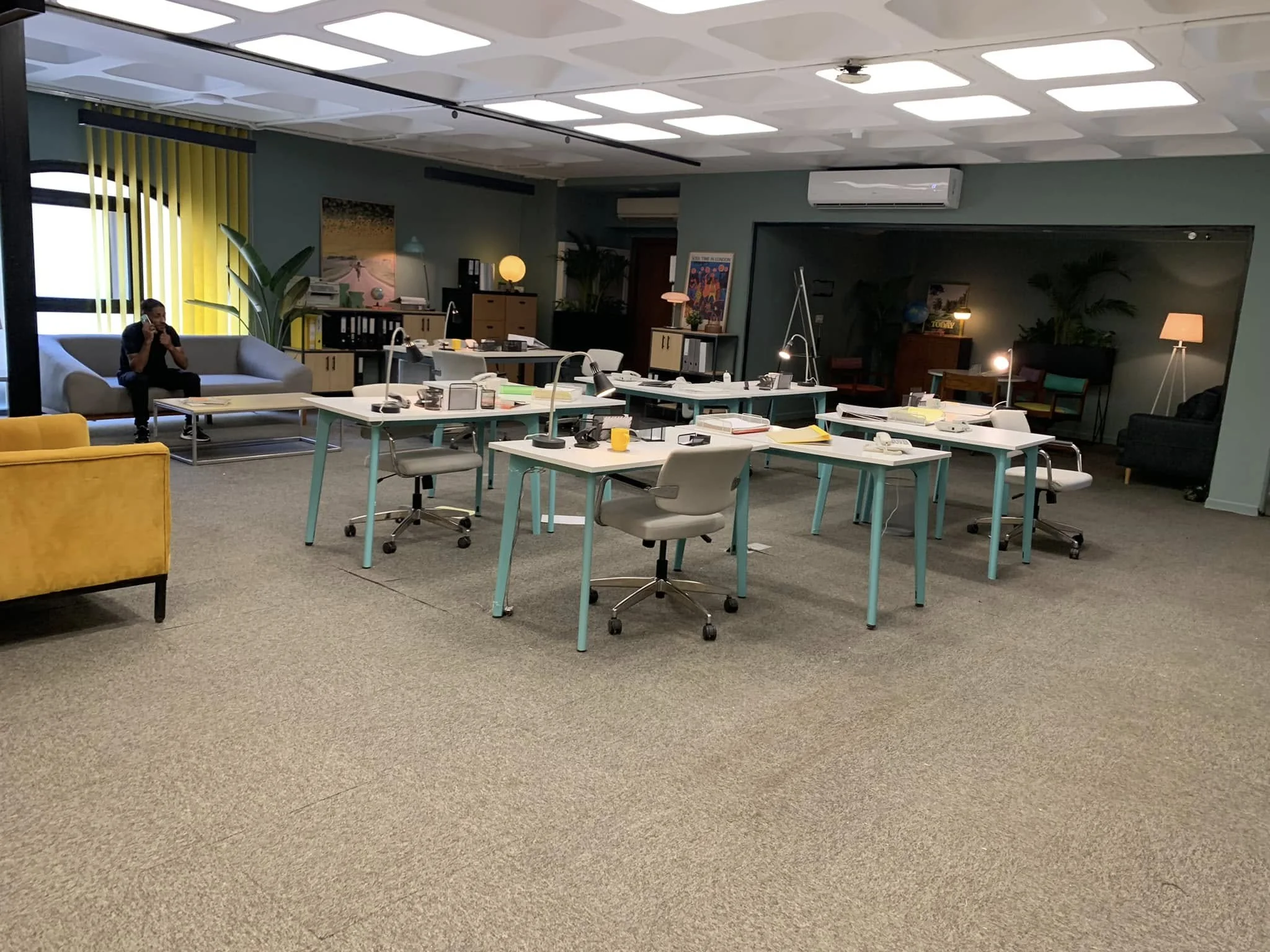 A modern workspace design for The Greek Campus innovation hub. Features collaborative areas, private pods, and vibrant breakout spaces that reflect the dynamic startup culture.